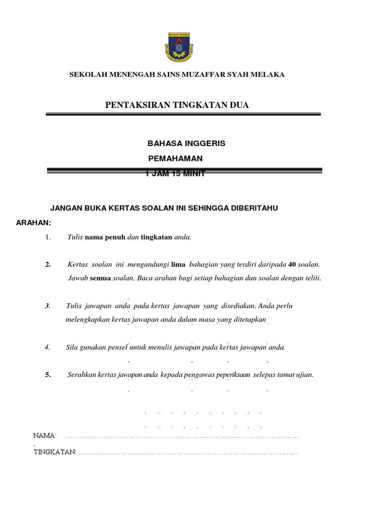 Contoh Soalan Paper 2 Bi F4 Mid Year